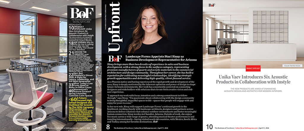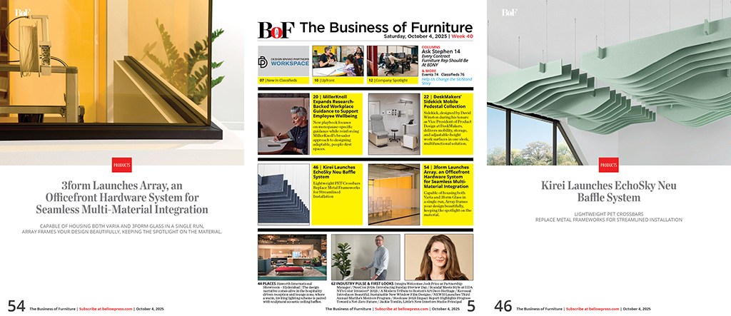 Focused exclusively on the contract furnishing industry, a singular source of strategic and practical information on selecting, deploying and managing interior furnishings.