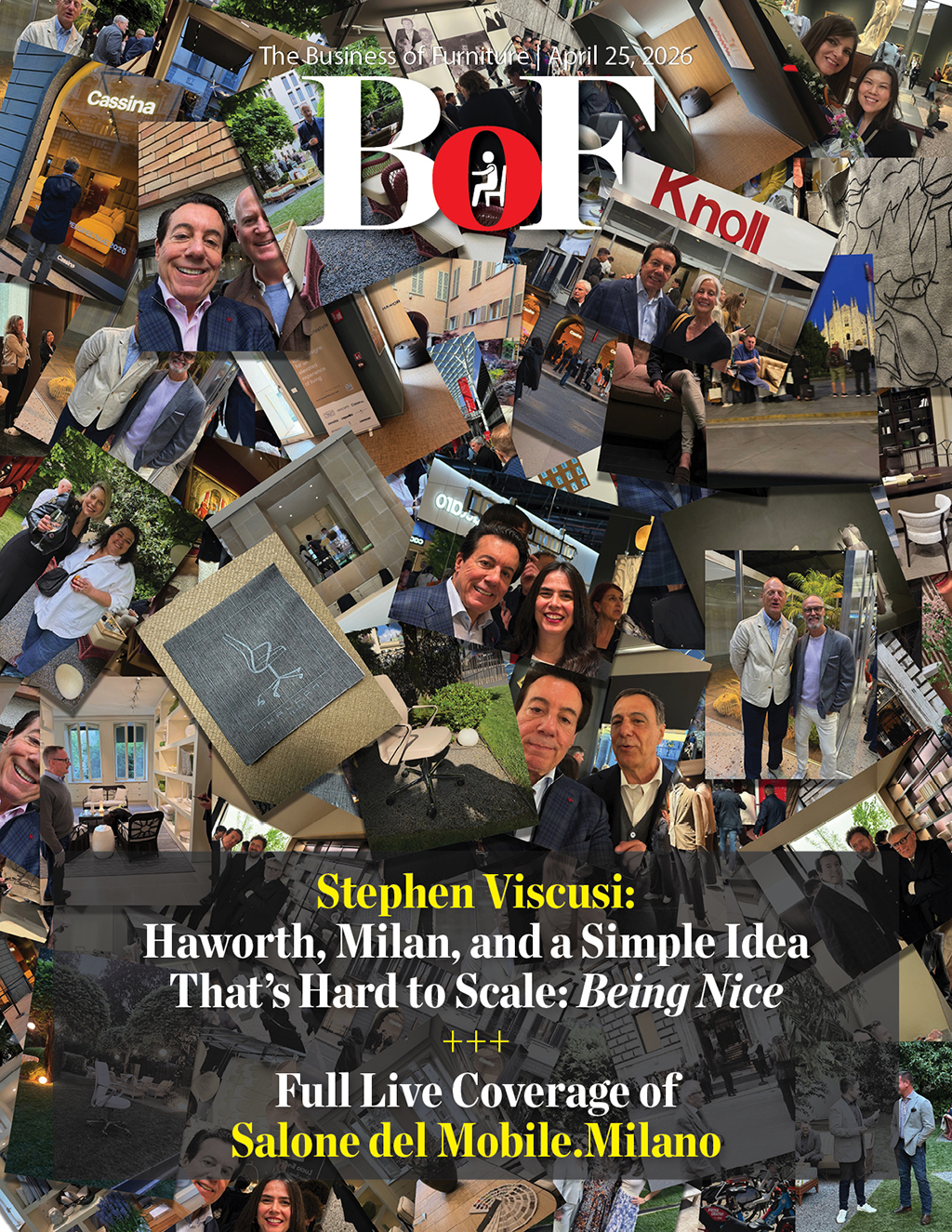 •   Stephen Viscusi Reports LIVE from Salone del Mobile.Milano 2026 - Architects, designers, specifiers and dealers (half of which were from the United States) were all lined up to get in to the Poltrona Frau Party / Knoll unveiled bold, boundary-pushing designs that redefine material and form / B&B Italia really packed them in them in, celebrating their enduring legacy in the heart of Milan / NJM Ltd of NYC hosted a lunch at Bacaro Montenapoleone in Milan's fashion quartier / The new FERRA chair was the star of the Halcon party at the Bulgari Hotel Milano during Salone