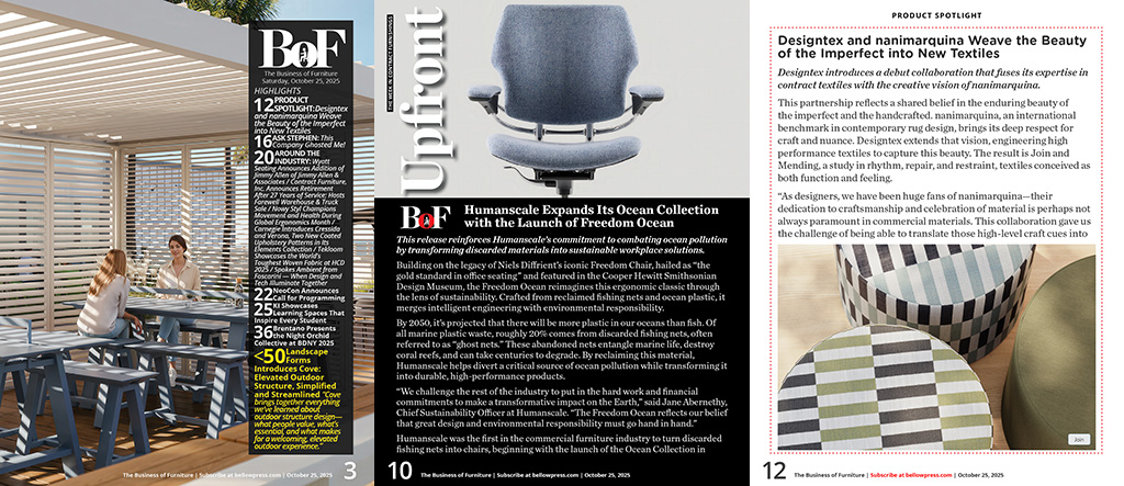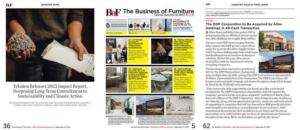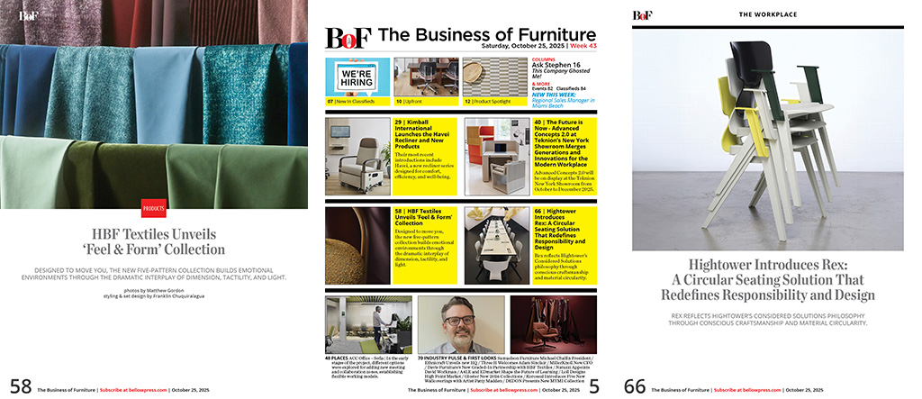 New publications about predicting change, not just watching it / Deb Bailey: Take nothing for granted / Sales' love-hate relationship with technology / Finding Talent Requires Strategy / Stephen Says / Ten "S" (teps) Toward the "OotF" / Losing Control of Your Brand / Stop Poaching my Employees! / Develop Your Most Important Asset: Your People / Ergonomics Faces Future With More Handhelds, Fewer Desks / Sales vs Marketing? The Internet has Changed that Relationship Forever / JRB Studio completes the design circle / In2Design's experience benefits growing customer base / West Elm Workspace takes industry by storm / The future of coworking / National learns from its own new HQ experience / DWR's dynamic duo:Edelman & McPhee / FluidStance is on the Level (and hopes you are too) / Tech startup PointDrive picks furniture close to home / Folkert Goes Big, Goes Bold / Industry Can Learn From The Coworking Movement / AV can add to a Dealer's Bottom Line / Where's Your ShowroomR? Everywhere / Group Dekko: Supplier to Budding Tech Company / Emory University connects with Backbone / HDR Chicago / IDEO has joined the creative kyu collective, a unit of Tokyo-based Hakuhodo DY Holdings / Studio Wise Uses Expertise in Specials to Create New Lines / Reflections on Groupe Lacasse turning 60 from its CEO / MOI Moves to New D.C. NoMa Showroom / idesk, Cherryman make a Splash on Silicon Beach in L.A. / Stir unveils new Product / The Backlash Against Collaboration / Melissa Price Helps Detroit Pop / Artopex showrooms / PWV Takes Carpets to New (Corporate) Levels / Dauphin Retools for the North American Market / History is Important but OM is Ready for the Next 30 Years /