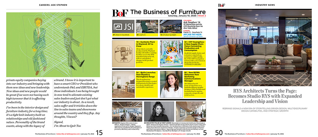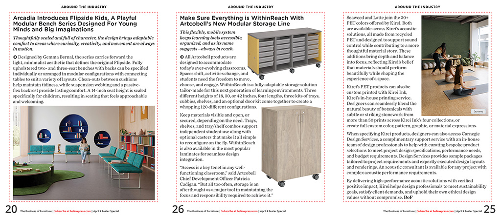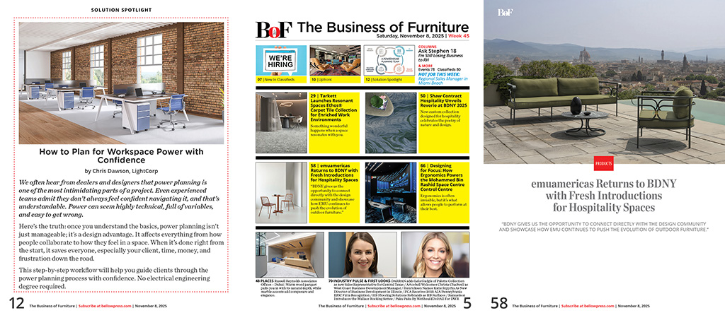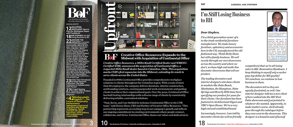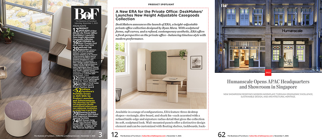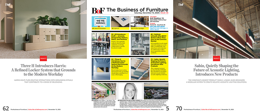 Focused exclusively on the contract furnishing industry, a singular source of strategic and practical information on selecting, deploying and managing interior furnishings.