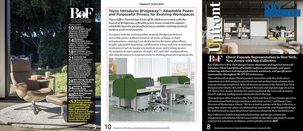 Business of Furniture, Midpoint Magazine and Workplaces Magazine are the go-to sources for keeping you informed about everything that is happening in the industry.
