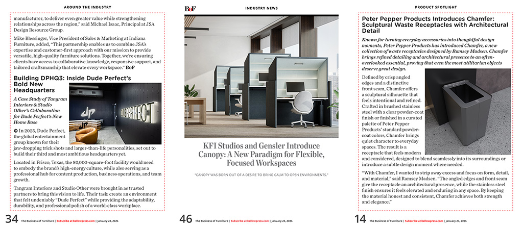 MNLA Elevates Four to Principals, Signaling the Next Chapter in Firm Leadership / Renson North America Promotes Max Sebrechts to Architecture & Design Director / IIDA NY Honors Fifth Annual Hazel Siegel Scholarship Recipients / A-Light Wins Three GOOD DESIGN® Awards / MillerKnoll Recognized as one of the Fortune World's Most Admired Companies 2026 / SouthWorth Capital Management Acquires American Furniture Manufacturing / Corgan Promotes Emily Strain to Lead Workplace Interiors Sector / Premier Promotes Johannes Michalsky to Chief Executive Officer / HOLLY HUNT Introduces New Collection Of Textiles and Wallcoverings for Spring 2026 / The 2026 Carnegie Trend ReportHas Arrived
